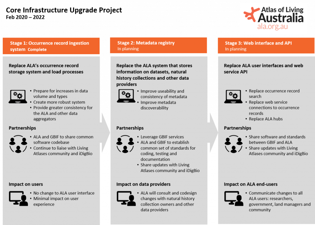 The ALA’s core infrastructure upgrade project will replace the Atlas of Living Australia’s occurrence data core systems.