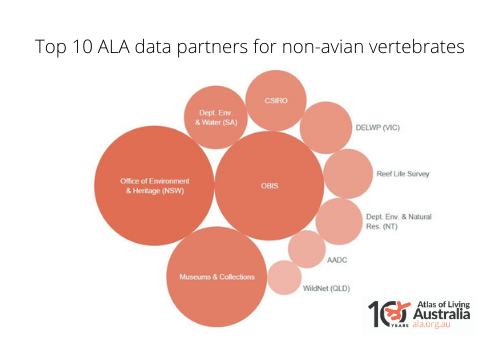 Our data partners are the backbone of the ALA, providing species occurrence data as well as authoritative data for species names and classification, geospatial references, and environmental layers.