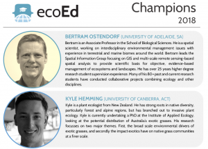 In doing this, ecoEd is enabling first-rate science education in Australia and increasing the capacity of the research community to advance science and deliver outcomes that benefit the nation and underpin the sustainable use of our ecosystems.