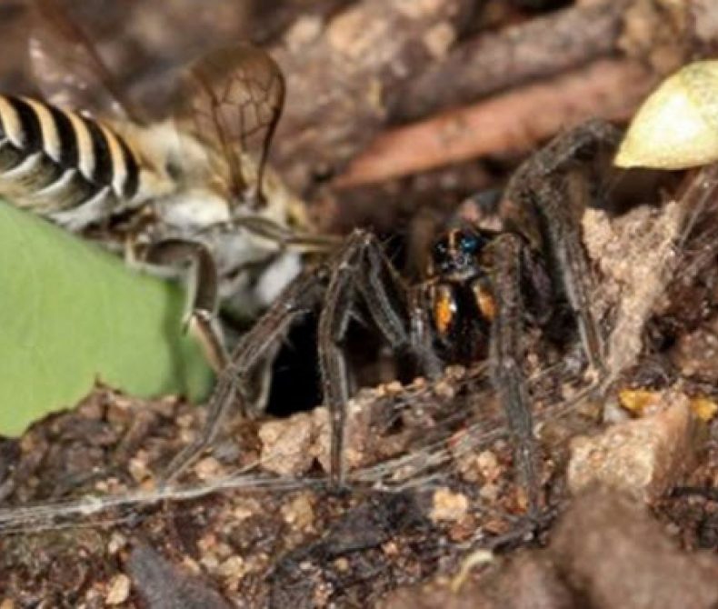 Watch out buzz bee, there’s a spider in the house… Posted on 22nd January 2018 Citizen scientist witnesses world-first home-share between wolf spider and bee.