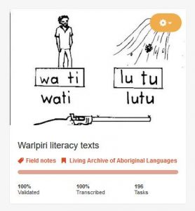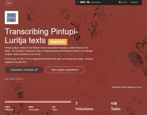 Thanks to the Australian Museum and the Atlas of Living Australia for this wonderful service. The DigiVol volunteers have been a wonderful asset to our project, and we look forward to creating new and interesting expeditions to work on. We’ve also shared with others working on Indigenous languages who are keen to take advantage of such an opportunity, so you might even see more language expeditions coming up.