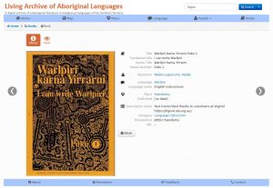 We’ve set up a range of expeditions in a few different Indigenous languages, with materials including scientific information in Yolngu languages, an eyewitness story of a massacre in Gurindji, a book about what animals are good to eat in Pintupi, stories written by children about monsters in Tiwi, and lots of literacy primers used for teaching Indigenous children to read and write in their first language,in Anindilyakwa, Warlpiri and Gurindji.
