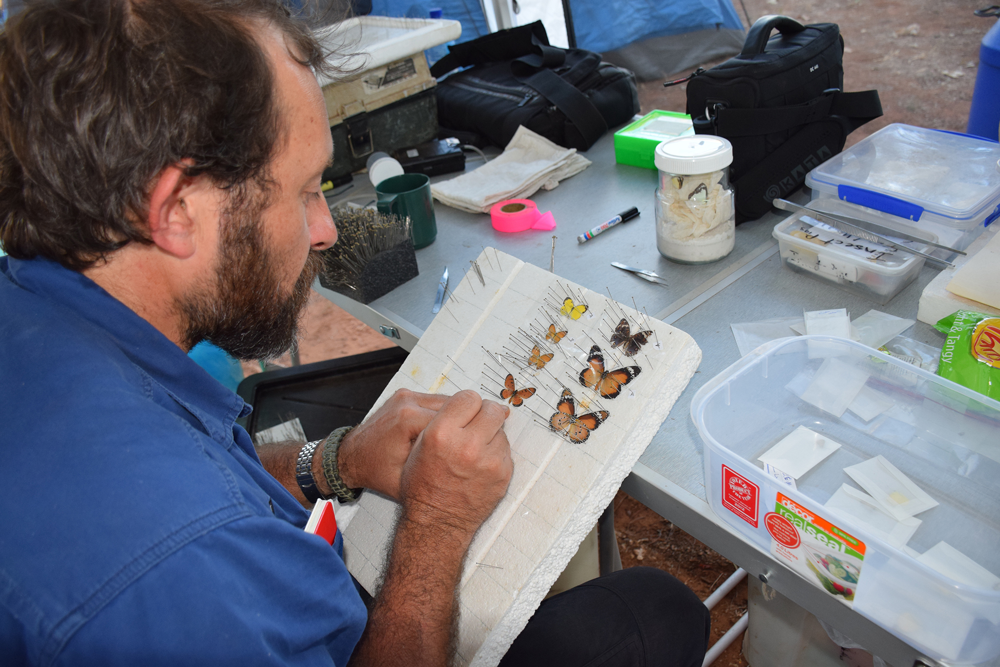 Upon their return to the museum, staff prepare each specimen for long term storage, which can include fixing tissues of mammals, fish and reptiles, pinning and drying insects, identifying species,and carefully labelling each specimen.