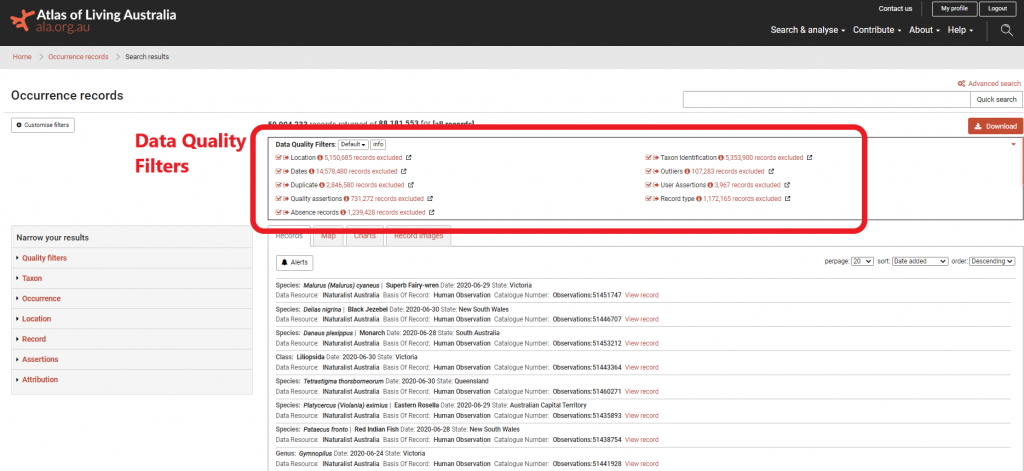For more information on the data quality project please see the Data Quality project page or contact us at dataquality@ala.org.au.