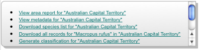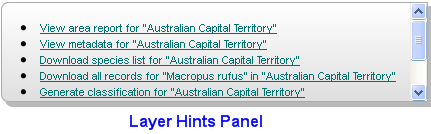Each of the layer types have their own set of actions added to the hints. However if both species and areas are added to the map, then their hints combine.