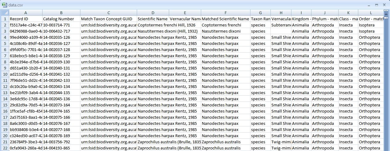 The download data file also contains TRUE/FALSE values for a range of data quality checks processed by the Atlas, or issues raised by users (e.g., ‘Suspected outlier’). Each column will only appear, if at least one record has a value of TRUE. See the Google Spreadsheet below for more details.