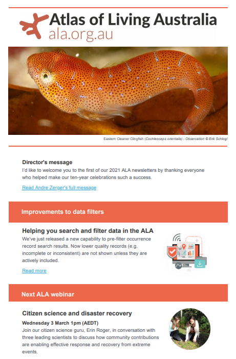 The ALA is made possible by contributions from its partners, is supported by NCRIS, is hosted by CSIRO, and is the Australian node of GBIF.